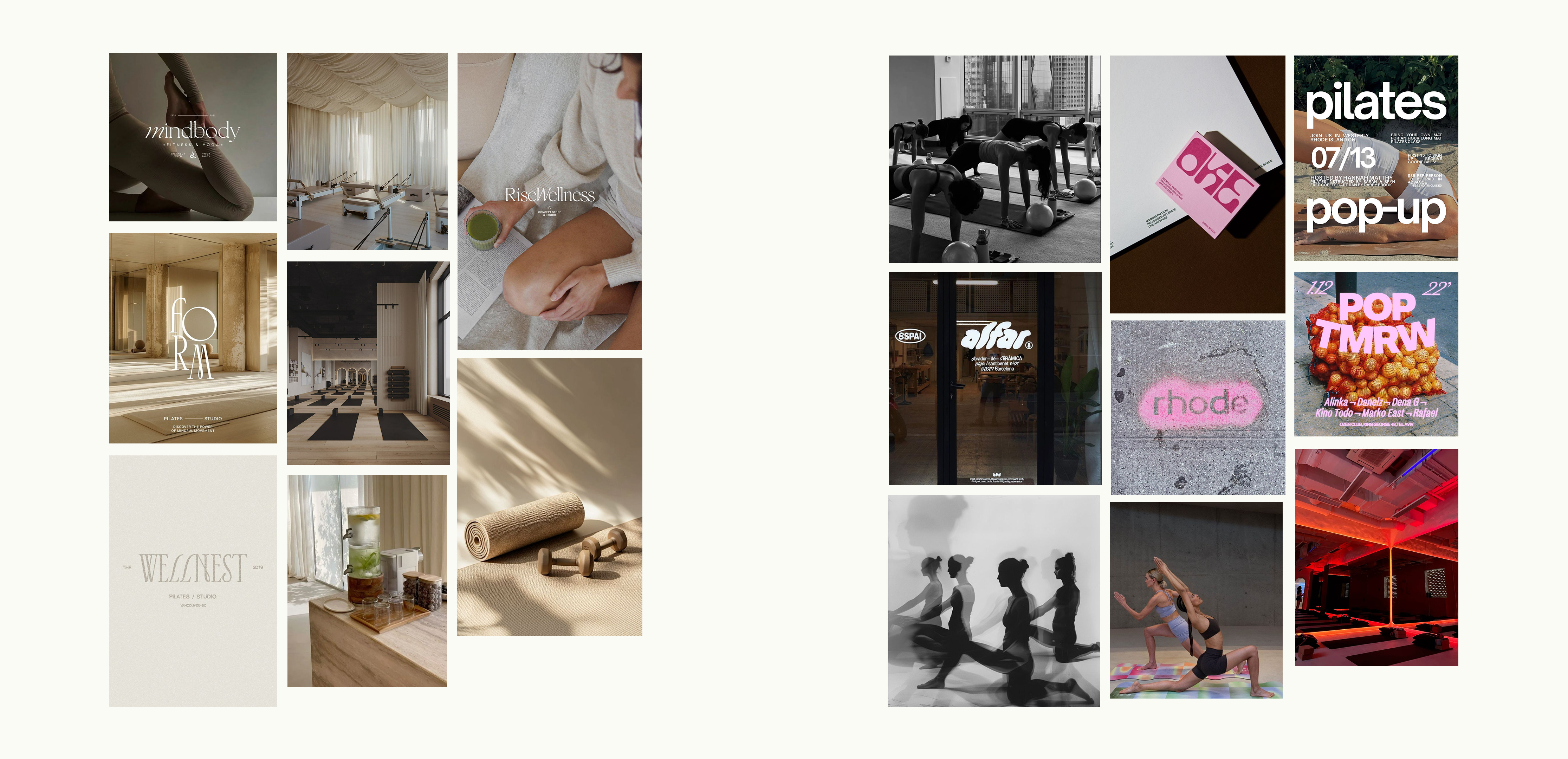 here are two moodboards for pilates studios: same industry, same service, completely different personalities.